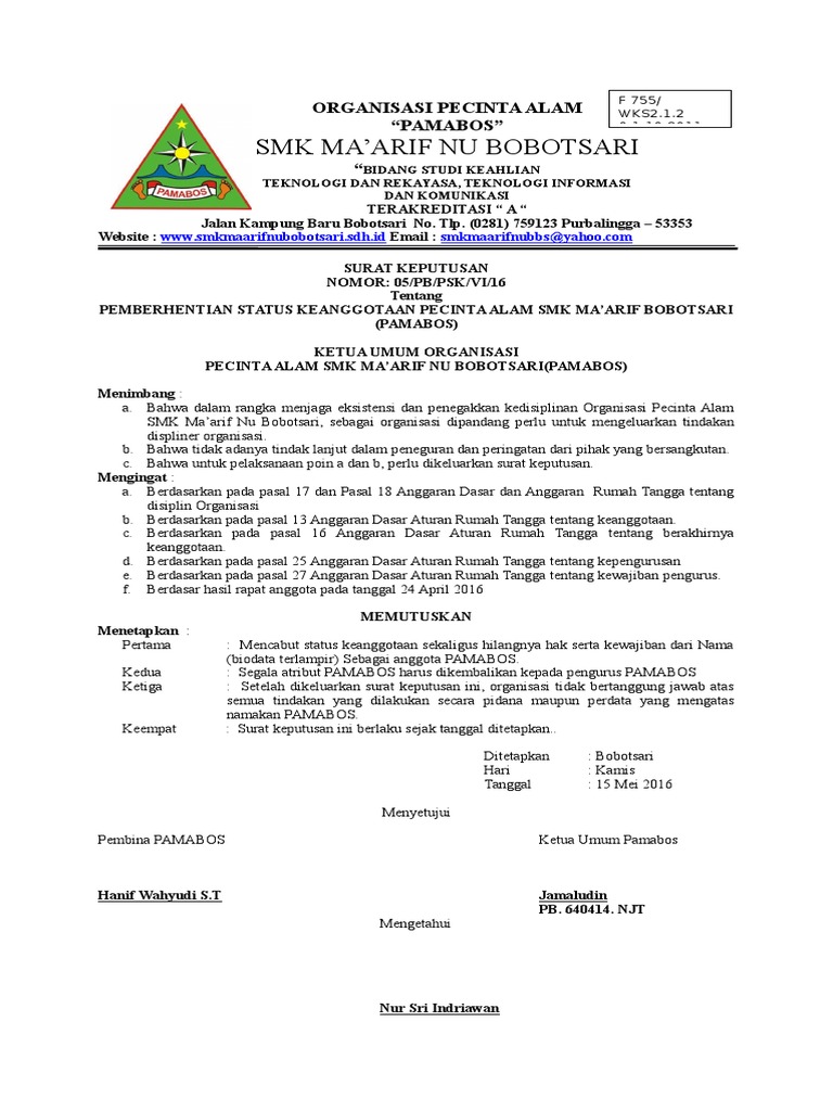 Contoh Surat Pembekuan Organisasi - Sk Pemberhentian Dan Pengangkatan Dari Dan Dalam Jabatan / Maybe you would like to learn more about one of these?